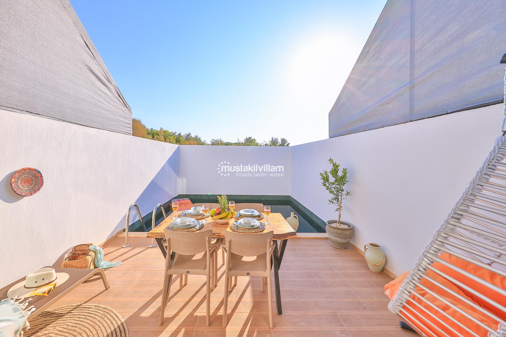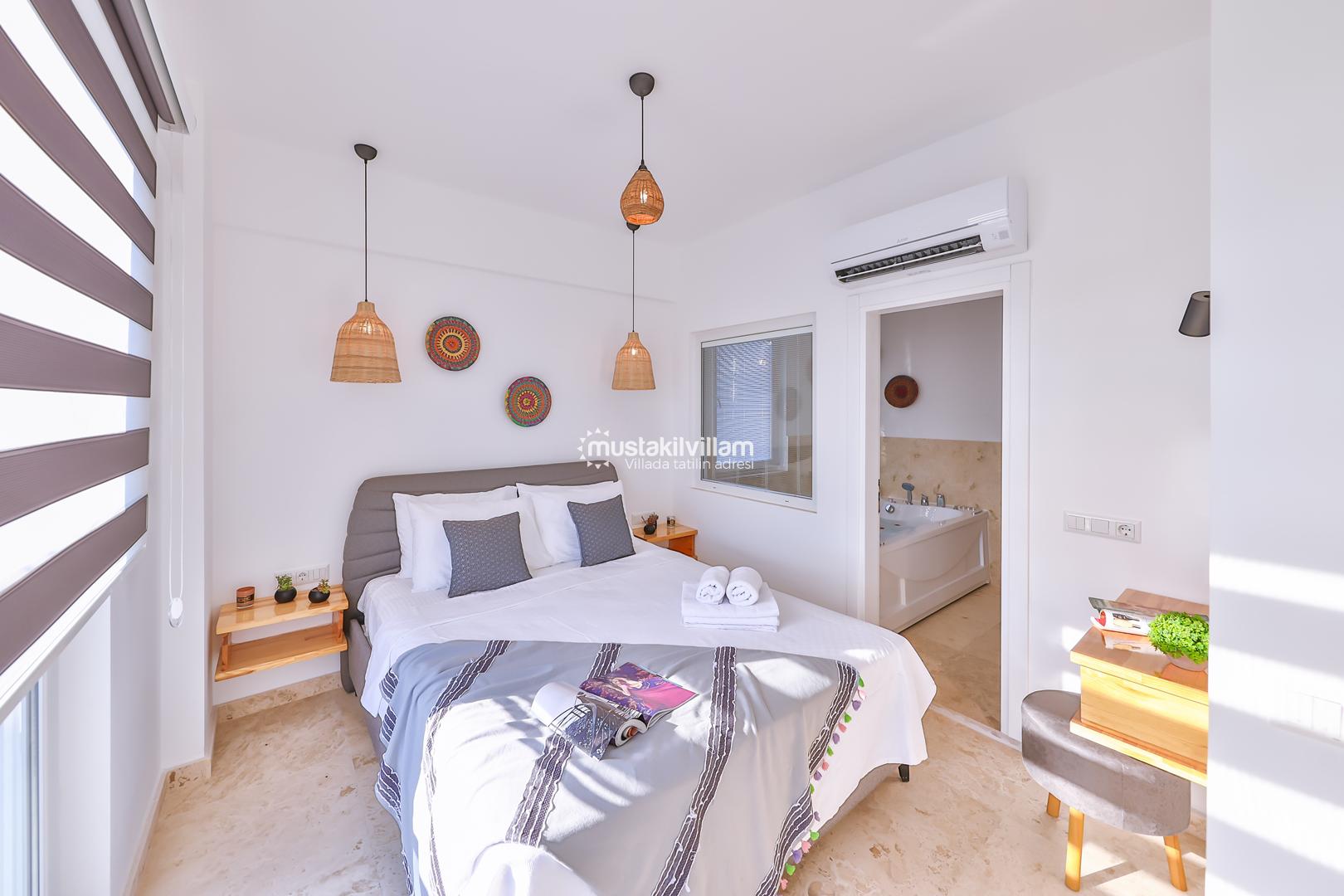 Kaş’ın Çukurbağ Köyü bölgesinde yer alan, 1 yatak odalı ve 2 kişi konaklama kapasiteli özel bir villadır. Özellikle balayı çiftleri için özenle tasarlanan villamız, tamamen korunaklı havuz terasıyla misafirlerine mahremiyet içinde konforlu bir tatil sunar. Doğayla iç içe, sakin bir konumda bulunan Villa Ay 2; şehir kalabalığından uzak, huzurlu bir atmosferde dinlenmek isteyenler için ideal bir kaçış noktasıdır. Ayrıca villanın yatak odasında yer alan jakuzi, günün yorgunluğunu atmanız için size özel bir konfor alanı sunar.